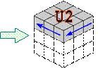 この図では揃えたいコーナーキューブの青色が右面を向いています。 |