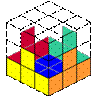 青色を含んでいるコーナーキューブで、3層目にあるものから揃え始めるとスムーズに行きます。 |