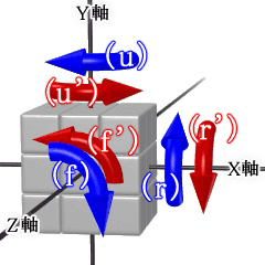 ★日本では主に左図のように、各面の回転記号の小文字をカッコで囲った記号