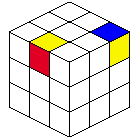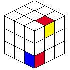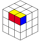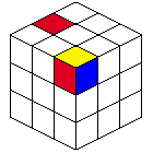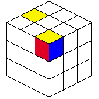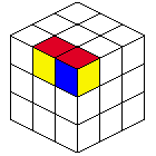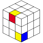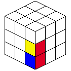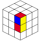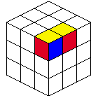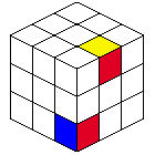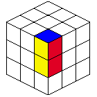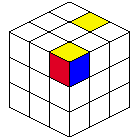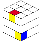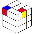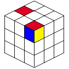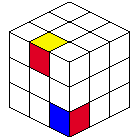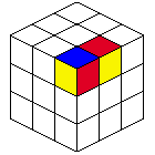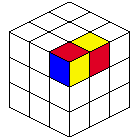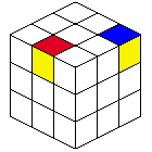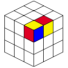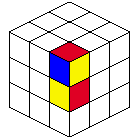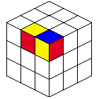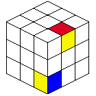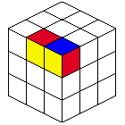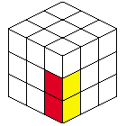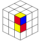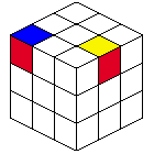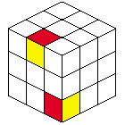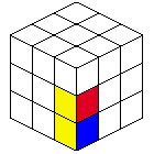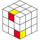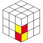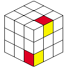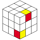 ★そして揃え中のペアが左図のスロットに最後の1手が「R」で揃うとすると、 上で見つけた「I1」は次図「T2」になります。 (U面の位置は違いますので御了承下さい。) |